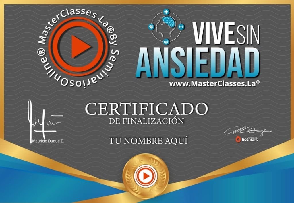 El MasterClass VIVE SIN ANSIEDAD es un programa completo que te enseñará a liberarte del estrés y la ansiedad, mejorando tu salud física y mental. Aprenderás técnicas para manejar el estrés, alimentarte de manera saludable, realizar ejercicios adecuados y adoptar hábitos de sueño saludables. Con 54 lecciones en video, este curso te brindará las herramientas necesarias para reducir tu ansiedad de inmediato y equilibrar tu sistema hormonal y neurológico. No pierdas la oportunidad de disfrutar de una vida libre de ansiedad y alcanzar tu plenitud y felicidad.